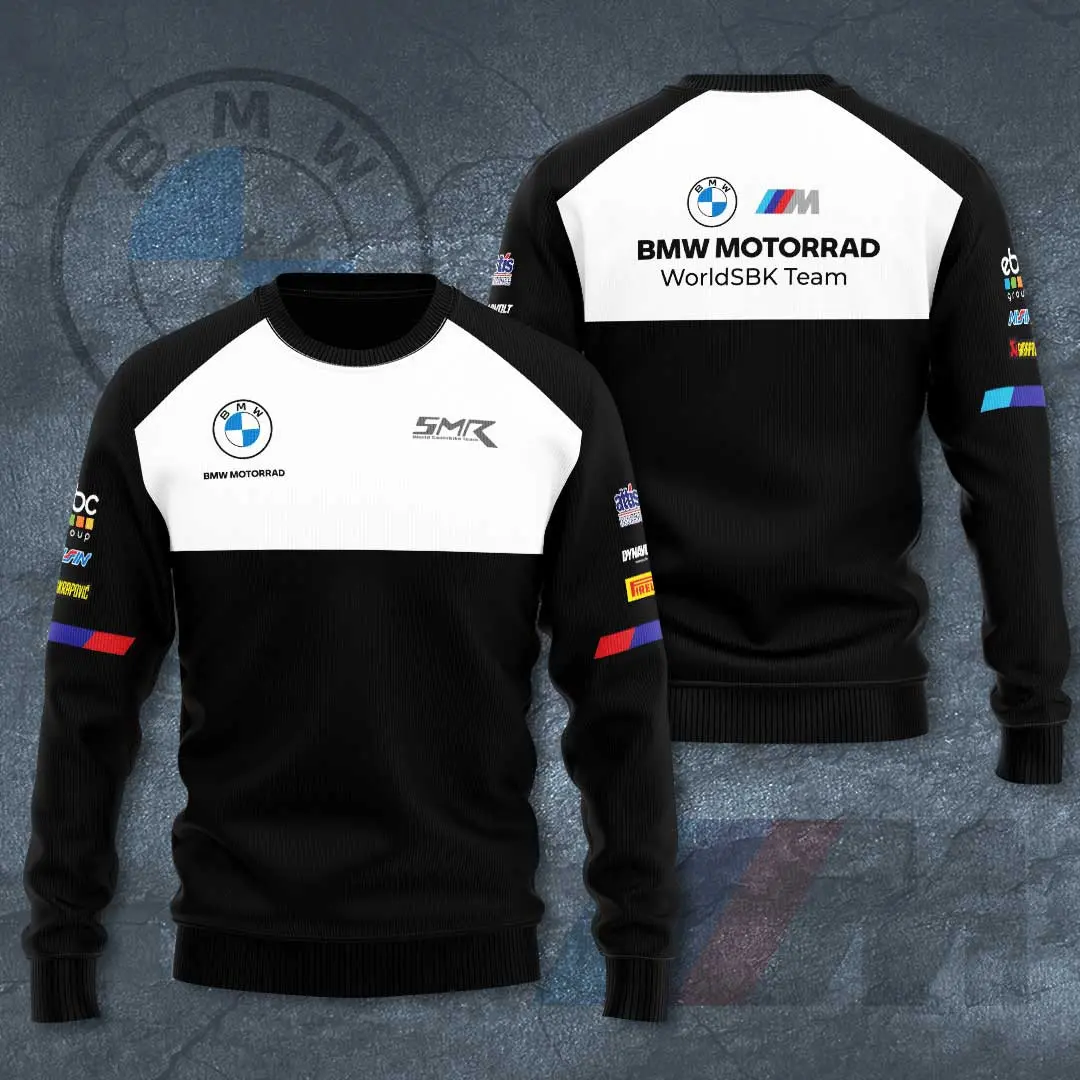 - BMW Motorrad Sweatshirt: Durable cotton‑blend fleece with ribbed hem and cuffs. Minimalist design accented by BMW Motorrad logos makes it a timeless staple.