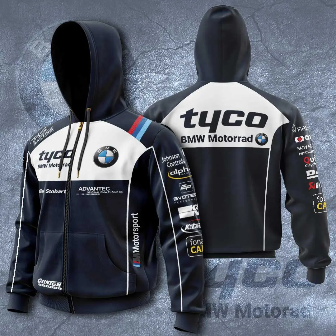- BMW Motorrad Zip Hoodie: Full‑zip closure adds versatility, while ribbed cuffs and clean lines deliver a modern, sporty look.