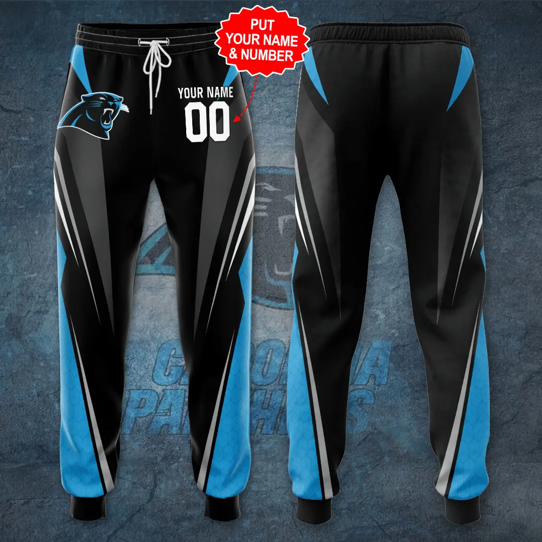 The design is anchored by the iconic Carolina Panthers logo, boldly displayed along the leg. Team colors are rendered in vibrant, fade‑resistant inks that stay crisp wash after wash. Personalization options allow you to add your name, favorite player number, or a custom slogan, transforming the sweatpant into a one‑of‑a‑kind piece that reflects your identity.