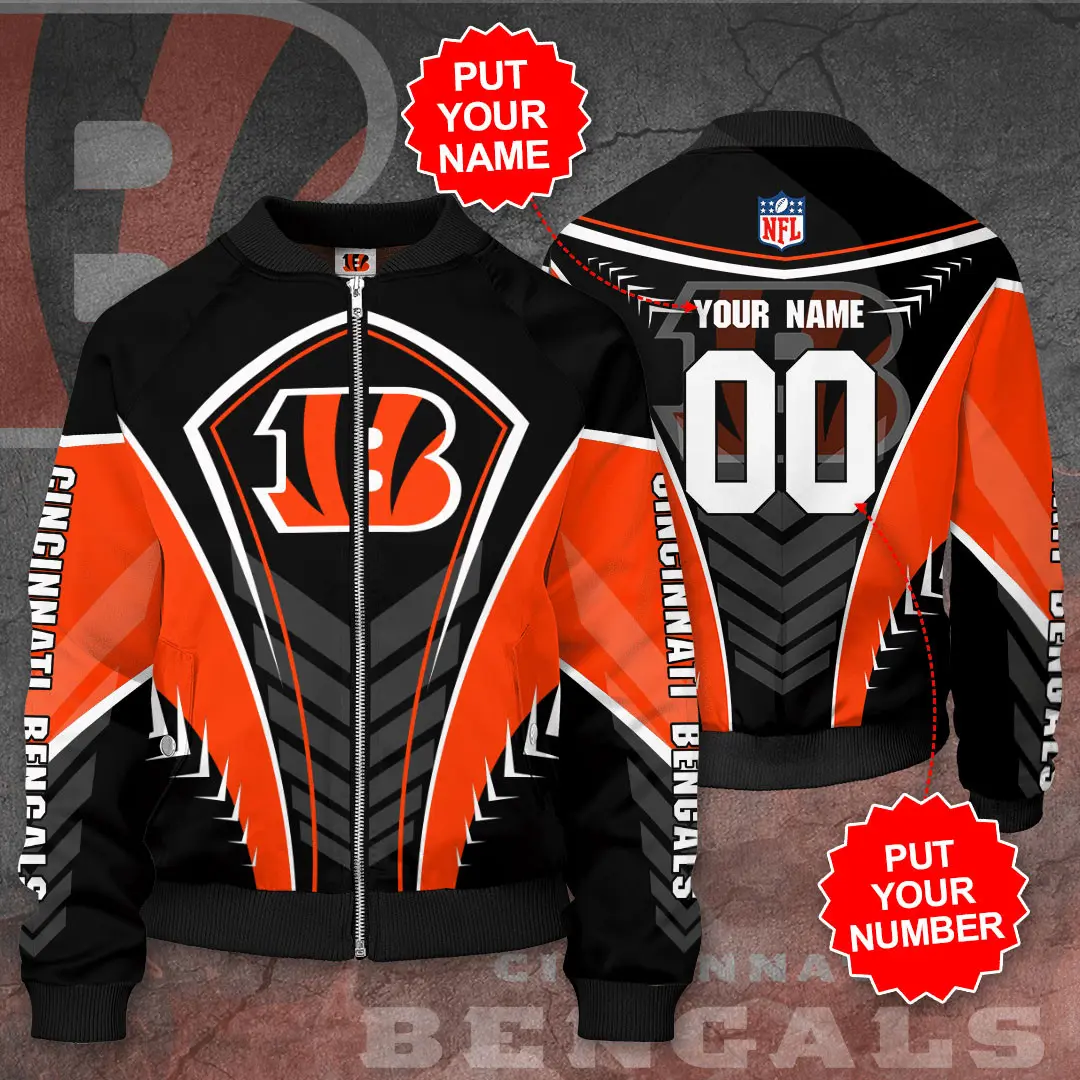 The design is anchored by the iconic Cincinnati Bengals logo, embroidered on the chest for a crisp, fade‑resistant finish. Team colors are rendered in vibrant detail, ensuring your fandom stands out wherever you go. Personalization options allow you to add your name, favorite player number, or a custom slogan, transforming the jacket into a one‑of‑a‑kind piece that reflects your identity.