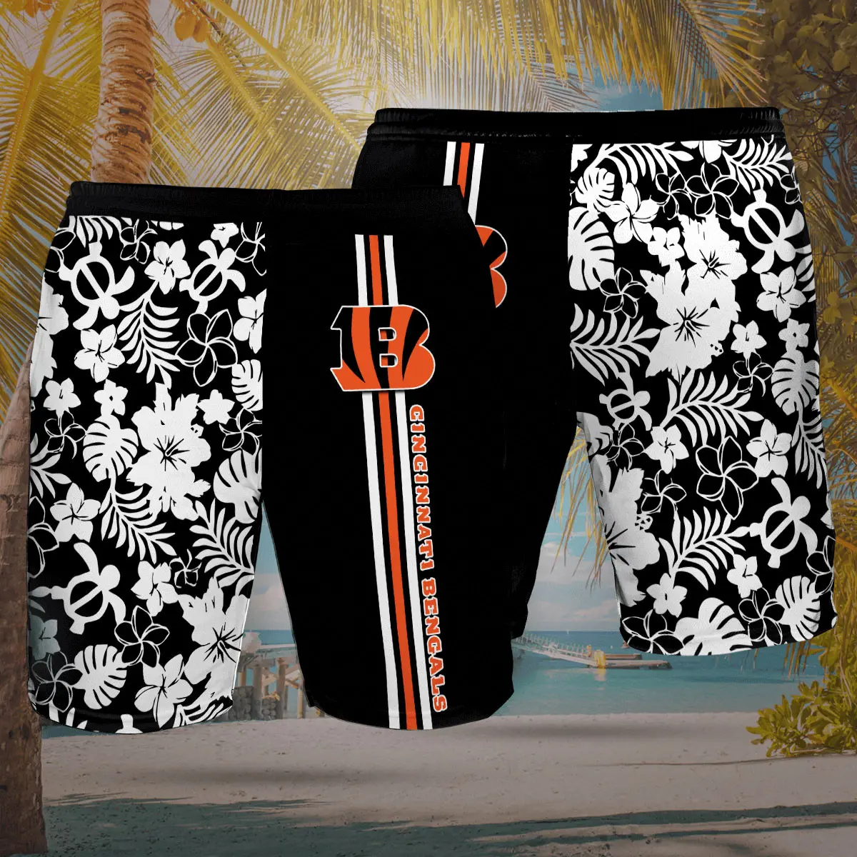 The design is anchored by the iconic Cincinnati Bengals logo, integrated into a lively Hawaiian pattern of palm leaves, florals, and bold team colors. Fade‑resistant printing ensures the graphics stay crisp season after season. Personalization options allow you to add your name, favorite player number, or a custom slogan, transforming the set into a one‑of‑a‑kind piece that reflects your identity.