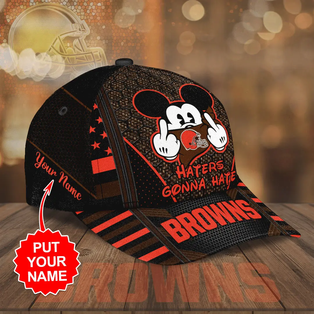The design is anchored by the iconic Cleveland Browns helmet logo, embroidered proudly on the front in bold detail. Team branding is rendered in vibrant tones, making your fandom impossible to miss. Personalization options allow you to add your name, favorite player number, or a custom slogan, transforming the cap into a one‑of‑a‑kind piece that reflects your identity.