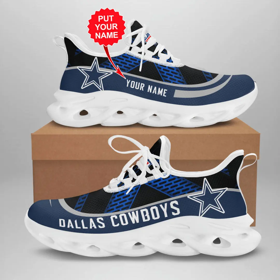 The design celebrates Cowboys heritage with bold details. The legendary star logo is prominently displayed, while team colors navy, silver, and white anchor the look. Depending on the style, you’ll find sleek minimalist versions, jersey‑inspired graphics, or modern streetwear accents that balance tradition with contemporary flair. Each pair is carefully tailored to look sharp on game day and stylish enough for everyday wear.