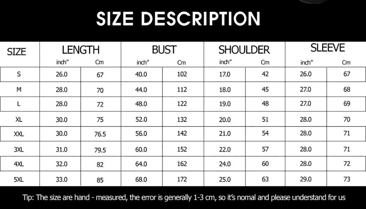 - Size: S, M, L, XL, XXL, 3XL, 4XL, 5XL.