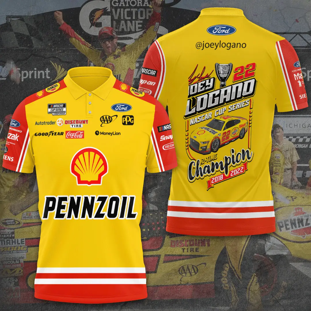 - Look: Collared polo with Joey Logano embroidery or printed graphics.
