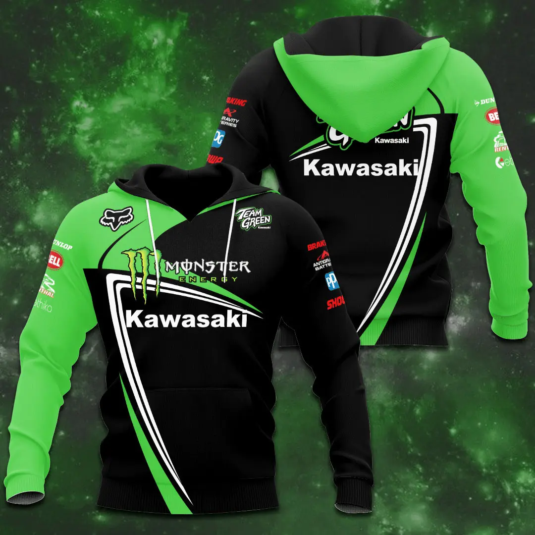 - Kawasaki Racing Team Sweatshirt: Minimalist yet bold, the Sweatshirt delivers everyday warmth with a clean silhouette. Featuring printed or embroidered graphics, it’s a staple piece for fans who want understated style with racing identity.