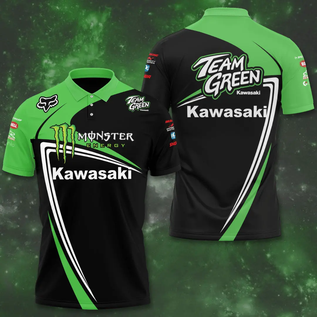 - Kawasaki Racing Team Polo: A refined take on racing style, the Polo combines comfort with sophistication. Made from lightweight performance fabrics, it features embroidered team logos and sponsor accents, ideal for paddock life or smart casual settings.