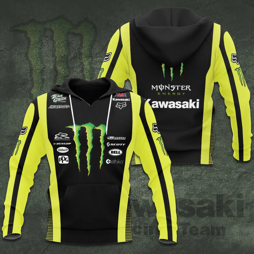 - Kawasaki Racing Team Sweatshirt: Minimalist yet bold, the sweatshirt delivers warmth with a clean silhouette. Printed or embroidered graphics showcase Kawasaki’s fearless identity.