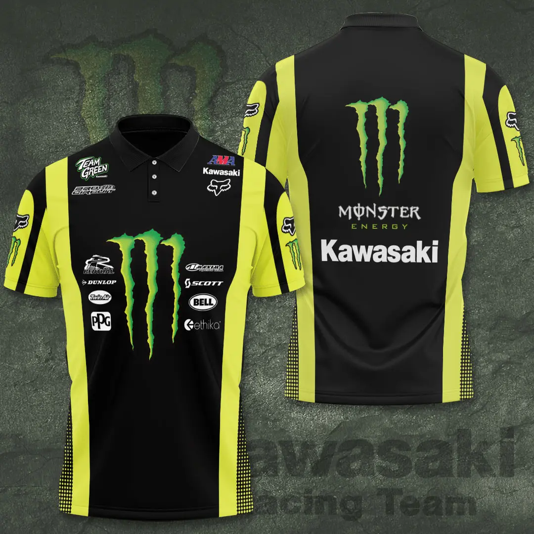 - Kawasaki Racing Team T‑shirt: Breathable cotton or performance blends ensure softness and resilience. Featuring bold Kawasaki graphics and the iconic green‑black palette, it’s perfect for casual wear or trackside energy.