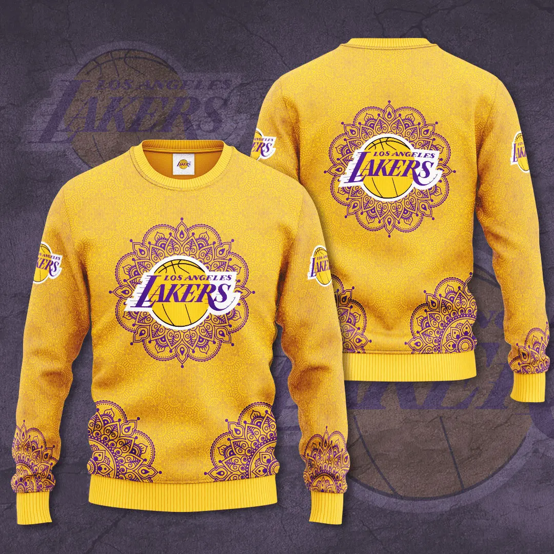 - Design: Classic crewneck sweatshirt featuring the Los Angeles Lakers logo in iconic purple and gold.