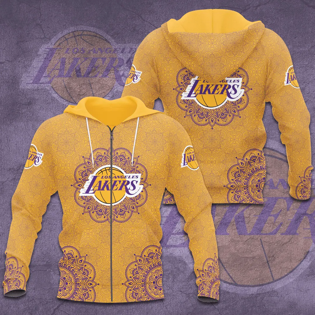 - Design: Full front zipper with adjustable drawstring hood and the iconic Los Angeles Lakers logo.