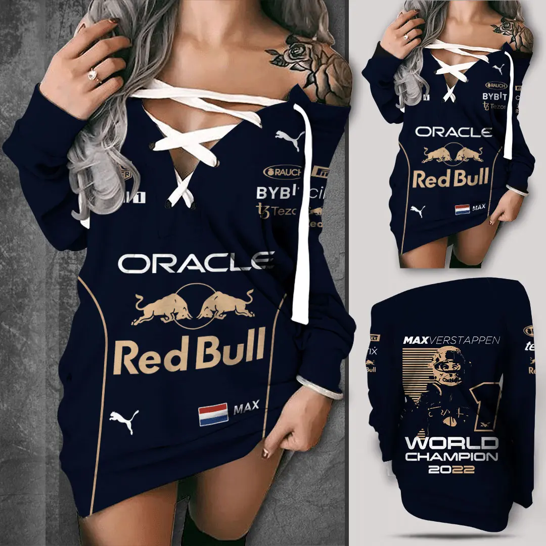 Max Verstappen Shoulder Deep V-Neck Lace Up Long Sleeve Pullover