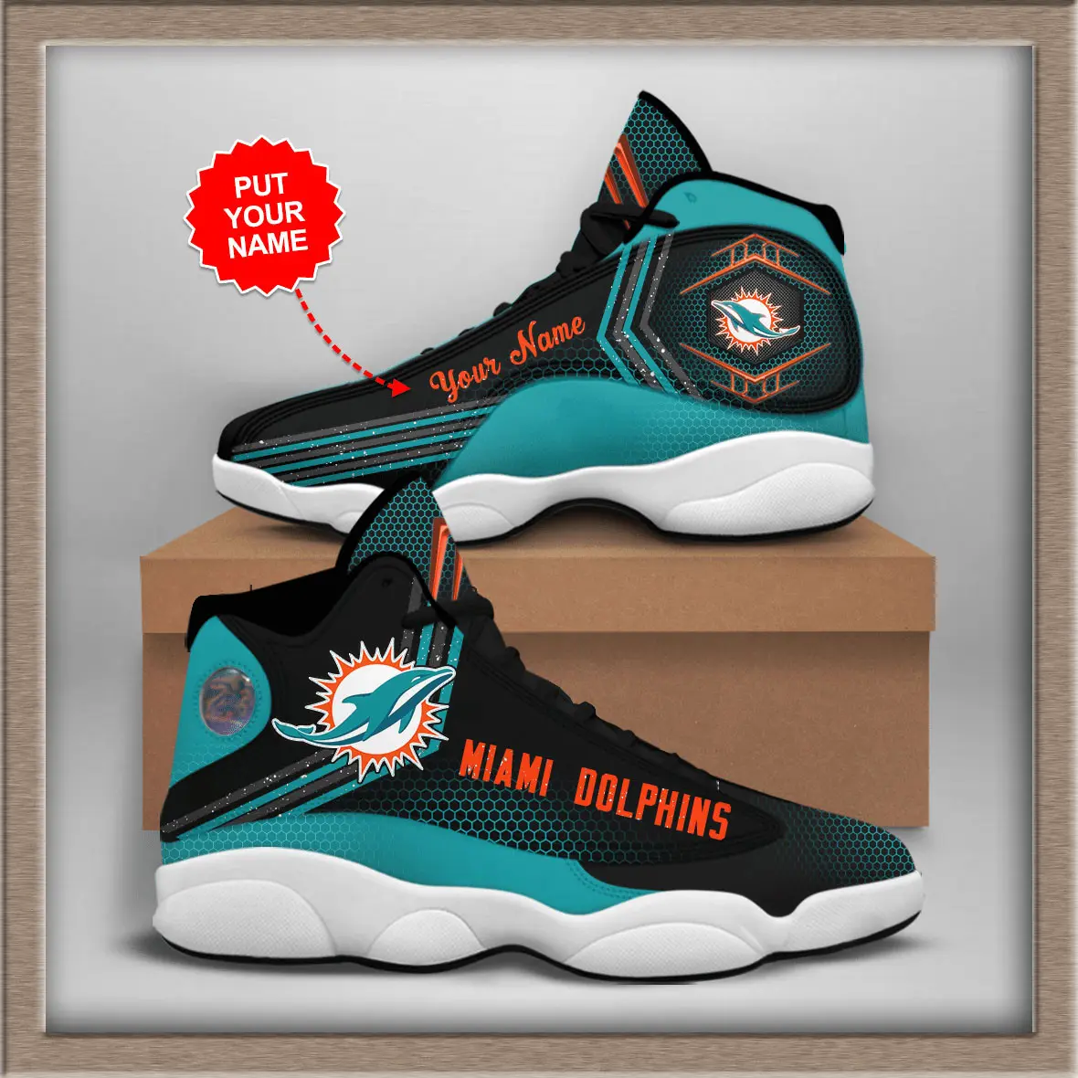 The design highlights the Dolphins’ iconic aqua and orange color scheme, accented by the official team logo printed or embroidered with precision. Some versions feature bold graphics across the sides, while others keep it subtle with a small logo near the heel, offering options for every fan’s taste. Sleek lines and modern styling make the shoes easy to pair with jeans, joggers, or shorts, giving you a look that transitions seamlessly from stadium to street.