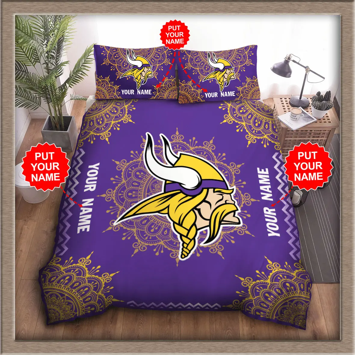 - Design: Bold Vikings logo and team colors integrated into the duvet cover and pillow shams.