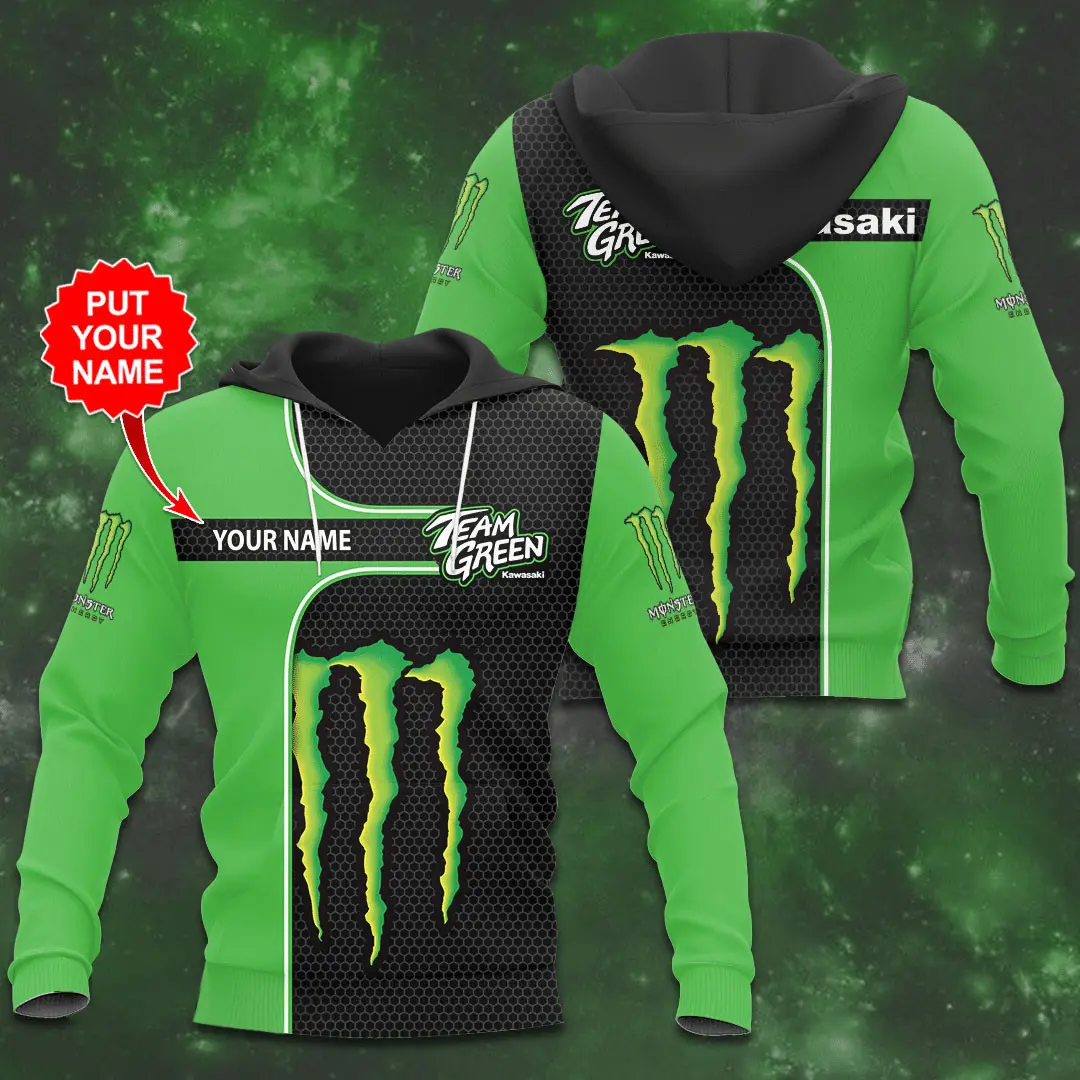 - Monster Energy Kawasaki Sweatshirt: Minimalist yet bold, the sweatshirt delivers warmth with a clean silhouette. Printed or embroidered graphics showcase Kawasaki’s fearless identity.