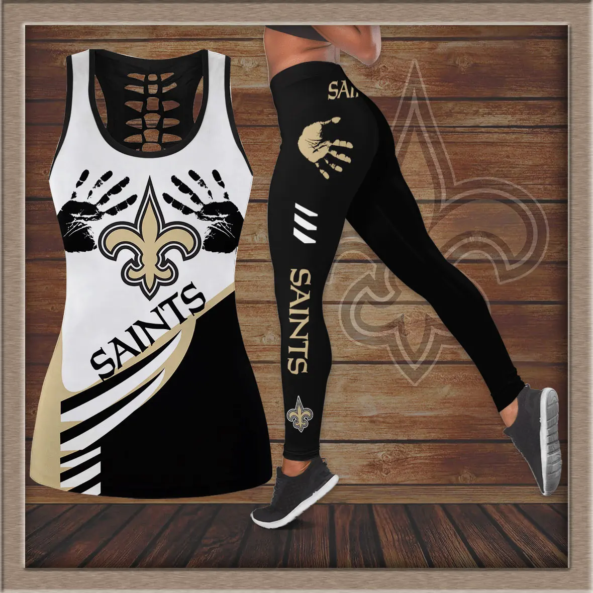The New Orleans Saints Tank Top & Legging Set is a stylish way to rep the Who Dat Nation, offering comfort, versatility, and bold team spirit whether you’re at the gym, relaxing at home, or cheering on game day.