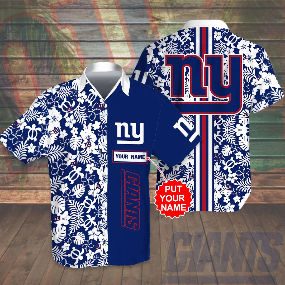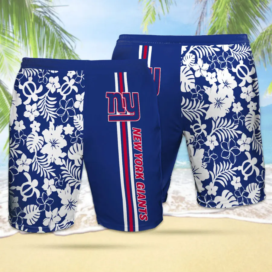 The shirt usually features bold Hawaiian prints—think palm leaves, flowers, or geometric patterns—blended with the Giants’ logo and signature blue, red, and white colors. The matching shorts carry the same theme, creating a coordinated look that stands out whether you’re at the beach or watching the game.