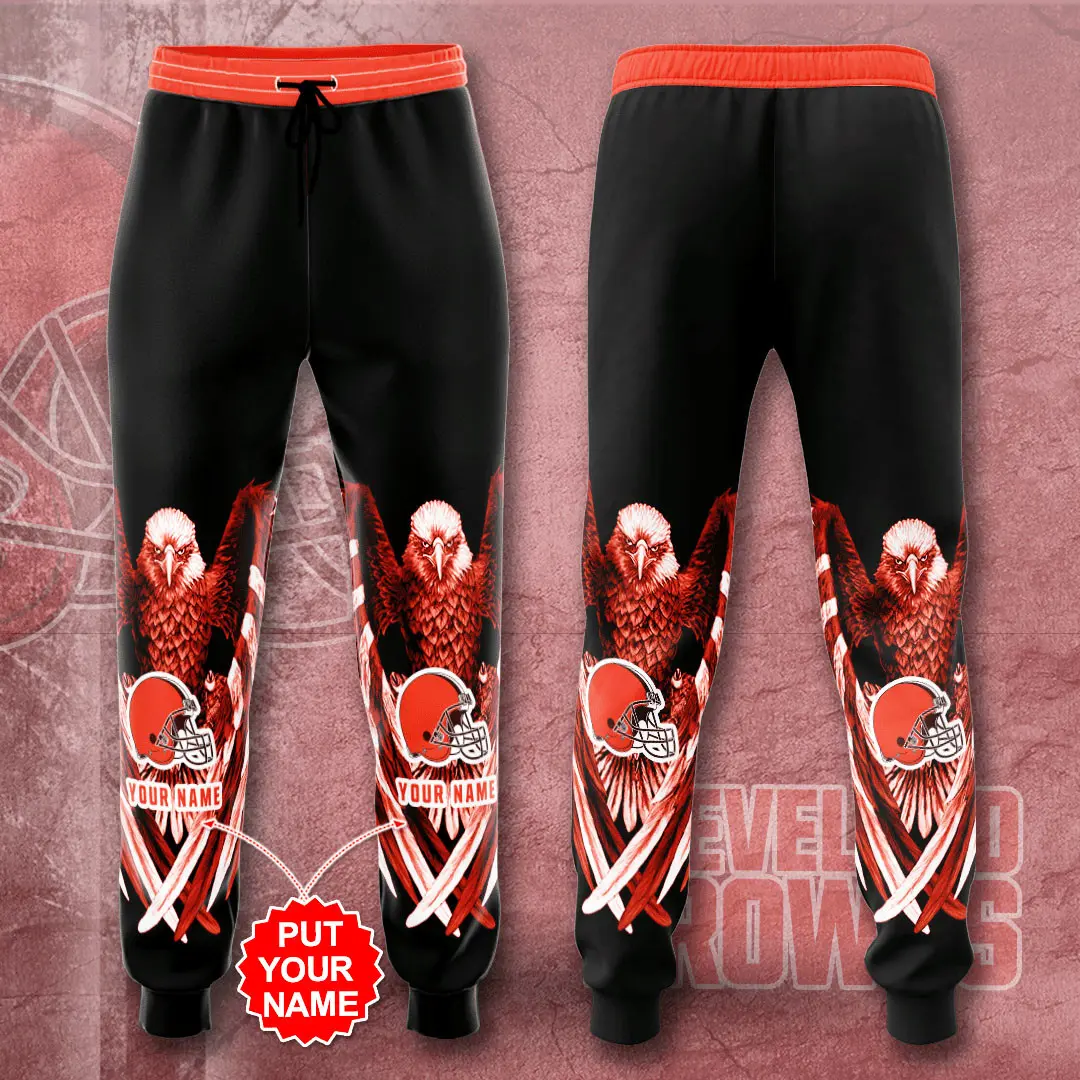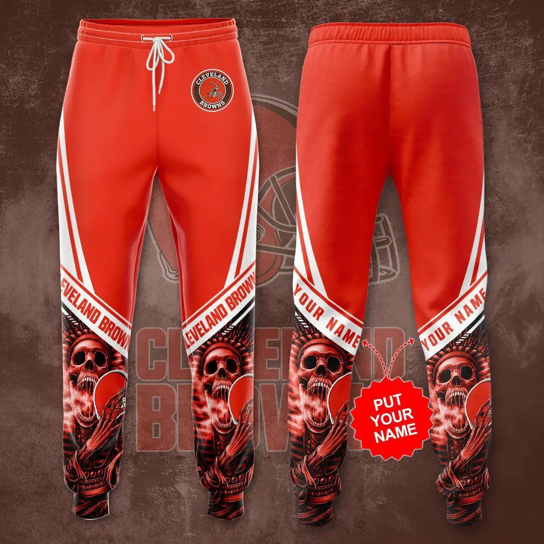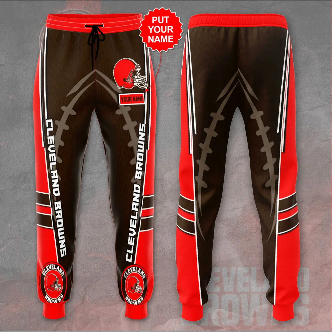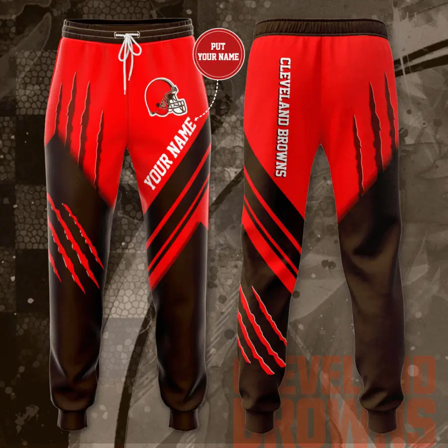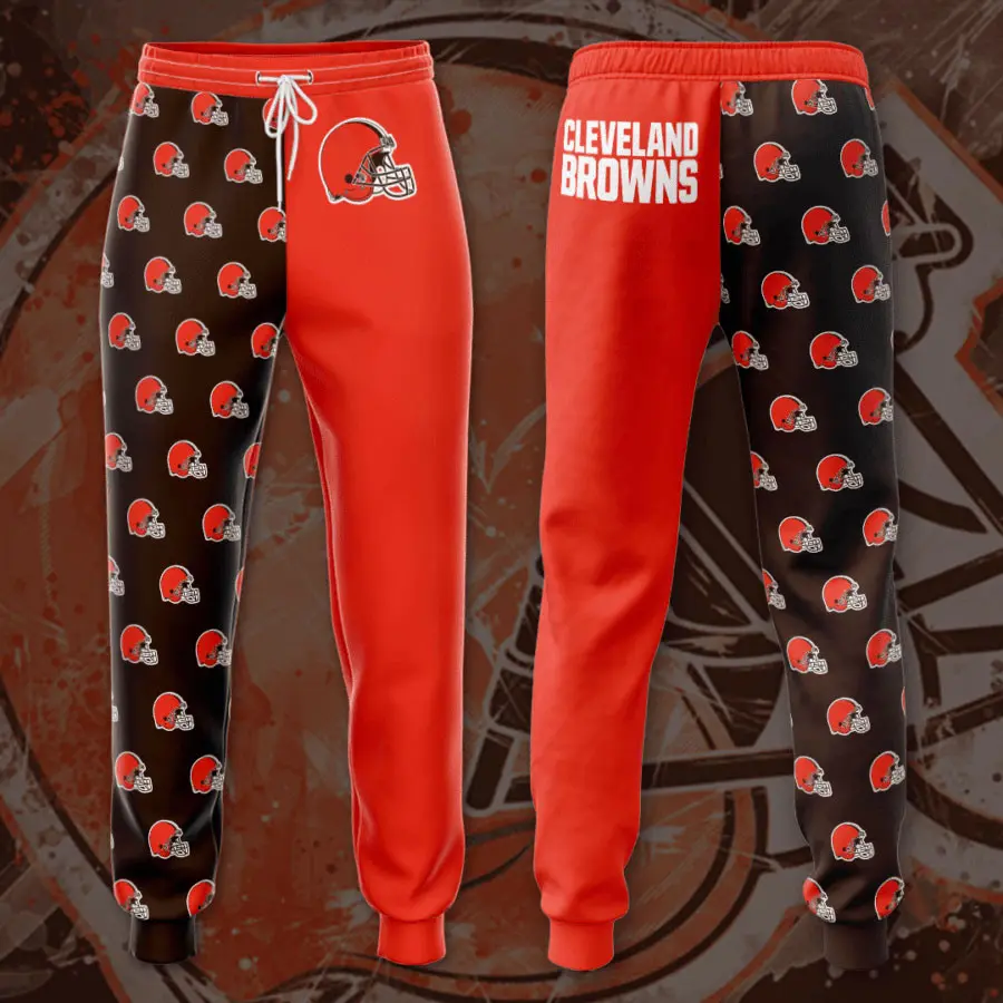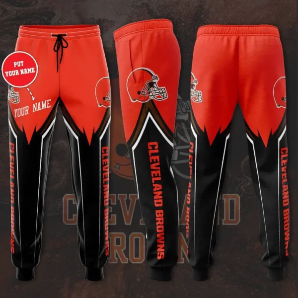 The design is anchored by the iconic Cleveland Browns helmet logo, displayed proudly along the leg in crisp detail. Team branding is rendered in bold tones, making your fandom impossible to miss. Personalization options allow you to add your name, favorite player number, or a custom slogan, transforming the sweatpant into a one‑of‑a‑kind piece that reflects your identity.