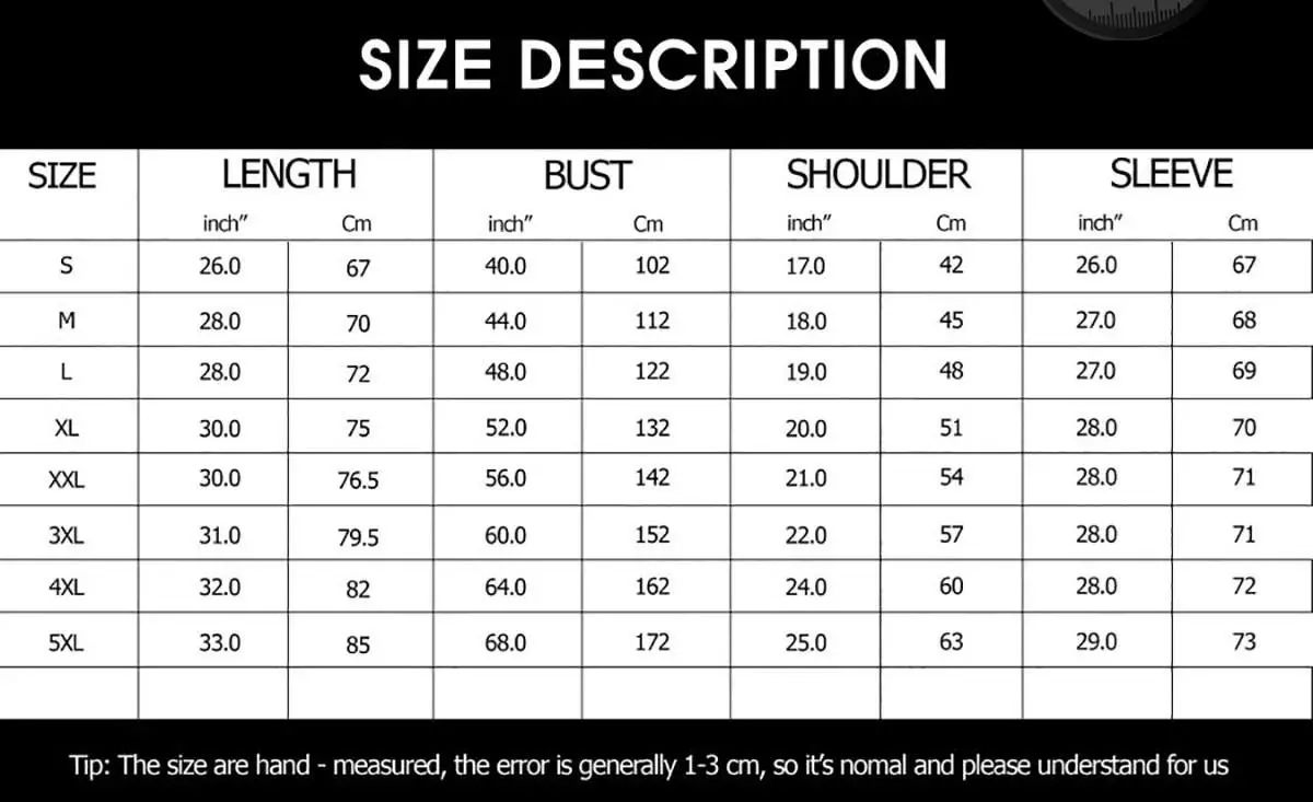 - Size: S, M, L, XL, XXL, 3XL, 4XL, 5XL.