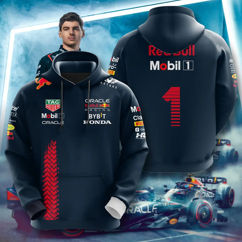 - The Red Bull Racing F1 Hoodie: Cozy armor for cooler days. With striking team visuals and a relaxed fit, it wraps you in warmth while carrying the energy of victory.
