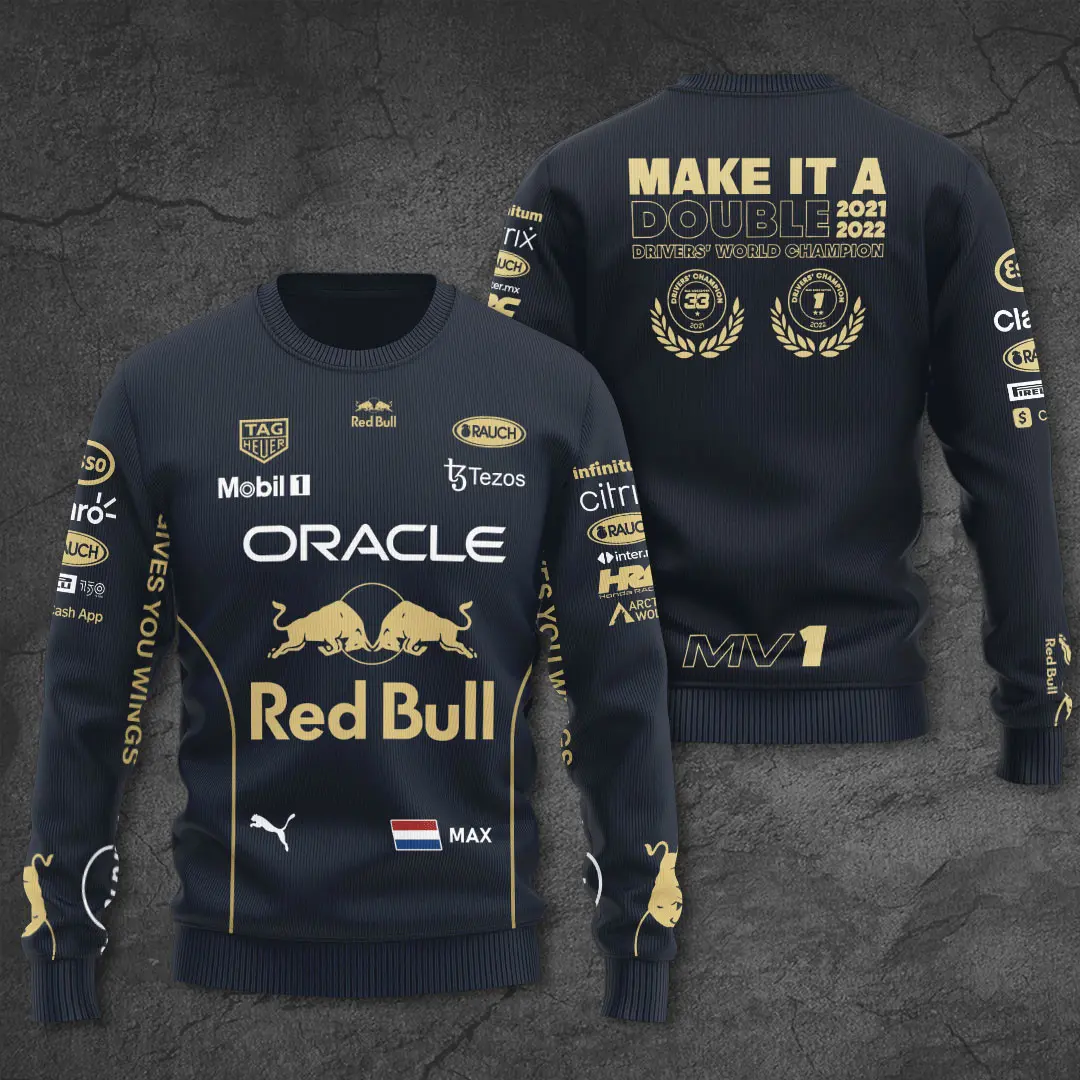 - Red Bull Racing MV1 Sweatshirts: Midweight comfort with bold graphics that showcase Red Bull Racing’s relentless drive.