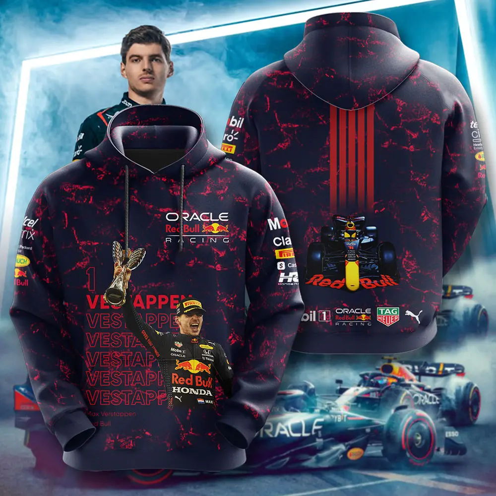 - Hoodies: Cozy, durable designs featuring striking prints that embody Verstappen’s championship drive and fearless energy.
