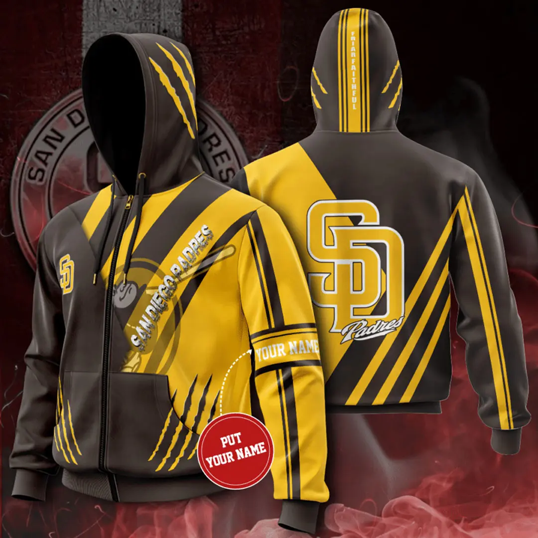 Layer up in style with the San Diego Padres zip‑up hoodie, perfect for cool evenings, workouts, or game days. Designed with soft fabrics and authentic team graphics, this hoodie delivers warmth, comfort, and Padres pride in a versatile zip‑up design.