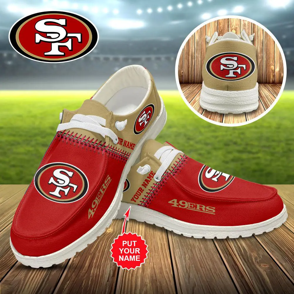 The San Francisco 49ers “Hey Dude” shoes are lightweight, casual slip‑ons customized with the team’s scarlet and gold branding. They’re available in men’s and women’s sizes, with options for personalization such as adding your name or jersey number.