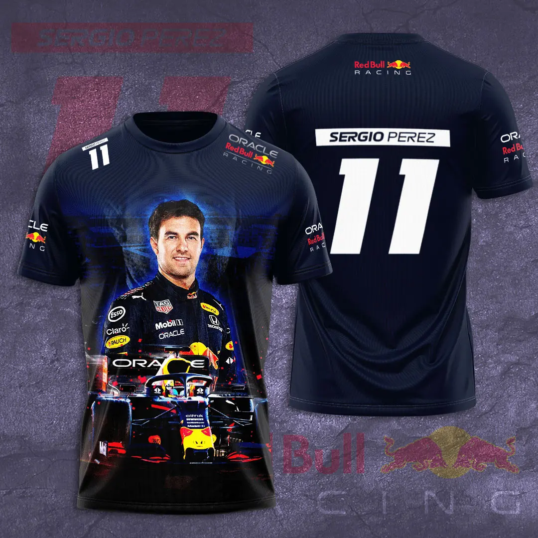 - T-Shirts: Lightweight, bold prints that capture Pérez’s fearless speed and signature racing style.