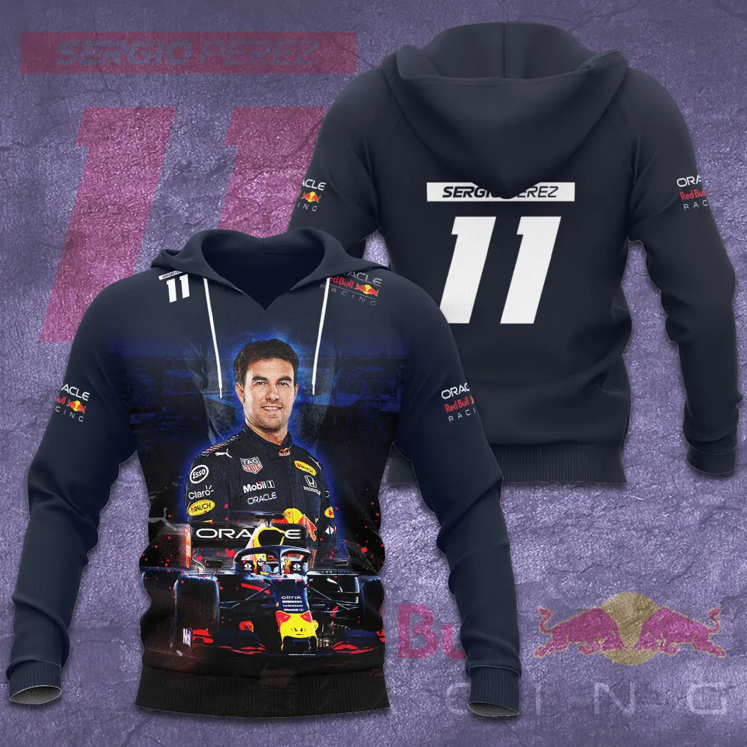 - Hoodies: Cozy, durable pieces with striking graphics that embody Checo’s relentless pursuit of victory.