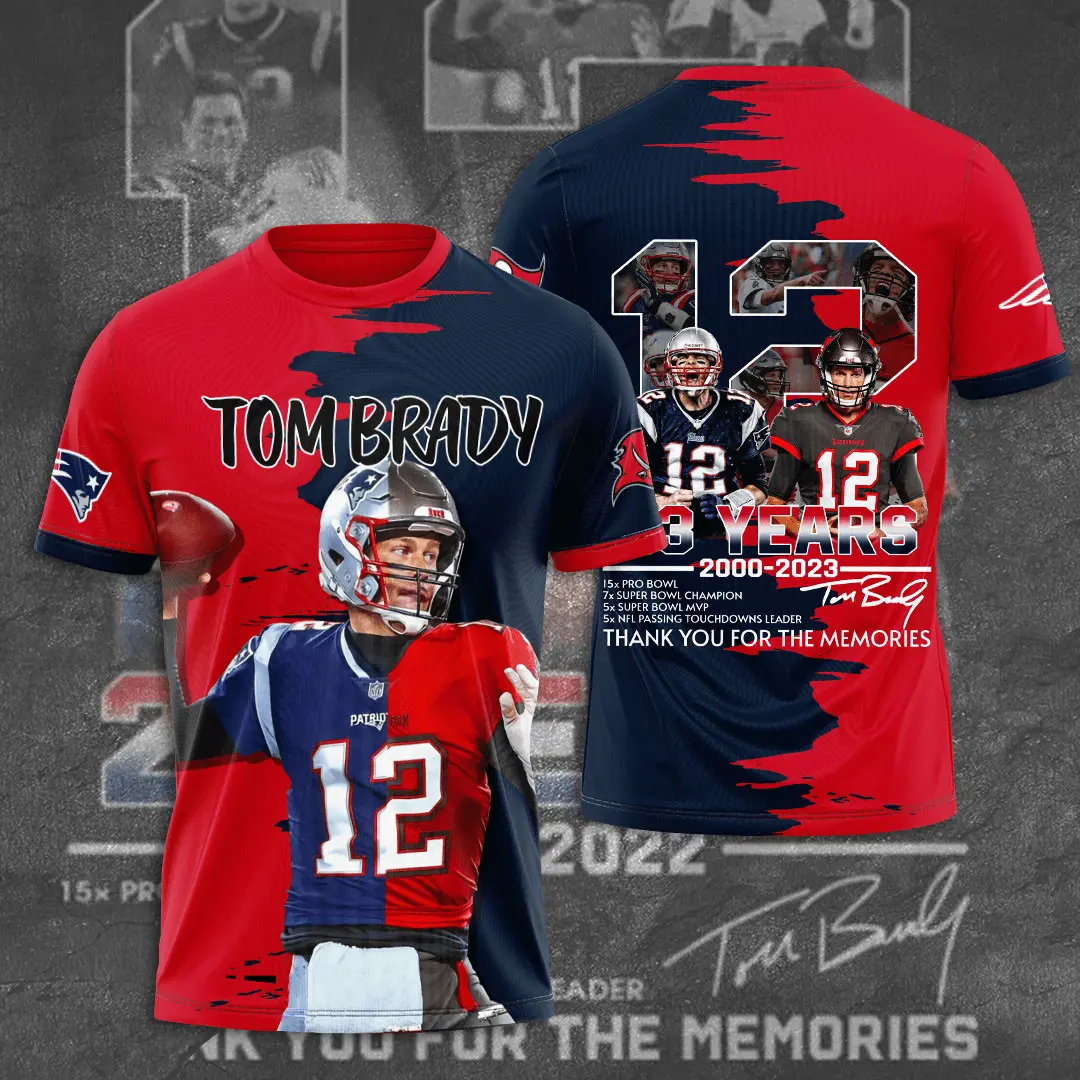 - Design: Screen‑printed Tom Brady name, number, or graphic artwork showcasing his Patriots and Buccaneers era.